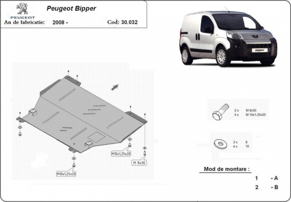 Voor de bescherming van: motor, versnellingsbak De motor beschermplaat is nieuw en past perfect bij de Peugeot Bipper, met de volgende motor / aandrijfversies: 1.4Tdi - geproduceerd tussen 2007 en 2021. Gemaakt van 2 mm dikke Staalplaat. Schroeven, moeren, alle bevestigingsaccessoires zijn inbegrepen. Alle carterbeschermplaten zijn poedergecoat, om corrosie te vermijden. De buitenkant van de carterbeschermplaten heeft staalversterkingen, waardoor de weerstand tegen impact wordt verhoogd. |