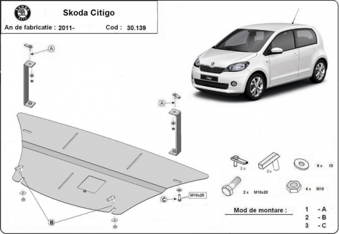 Motor en Versnellingsbak Beschermplaat voor Skoda Citigo