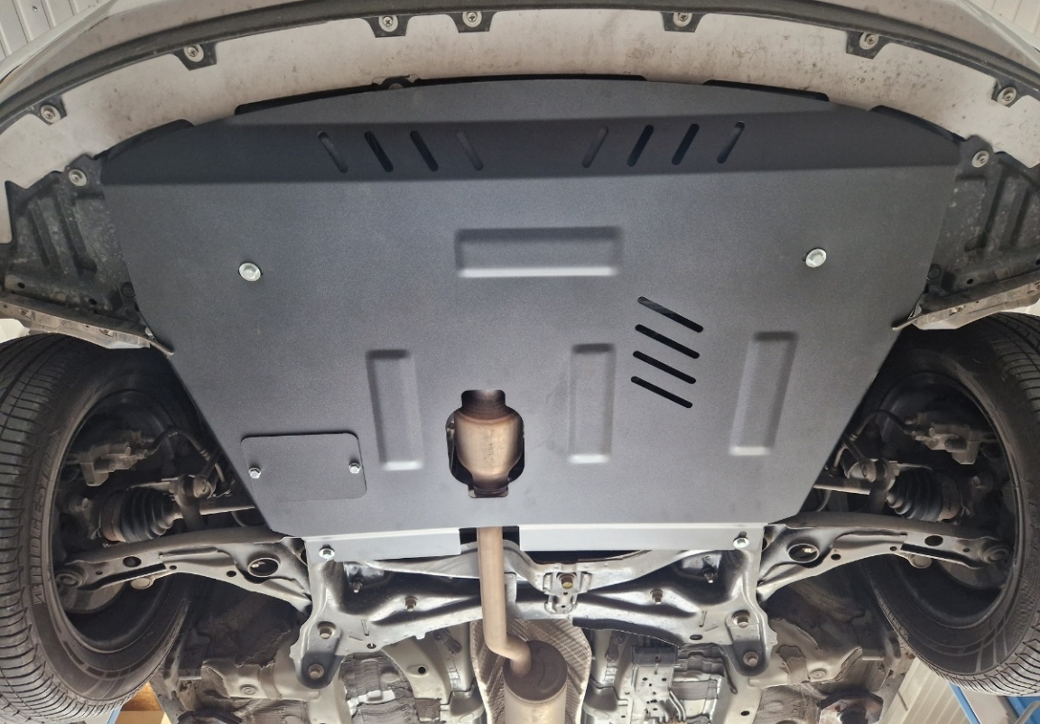 | Ieder voertuig heeft fabrieksgemaakte schroefgaten voor de carterbeschermplaat, voor een gemakkelijke montage. |