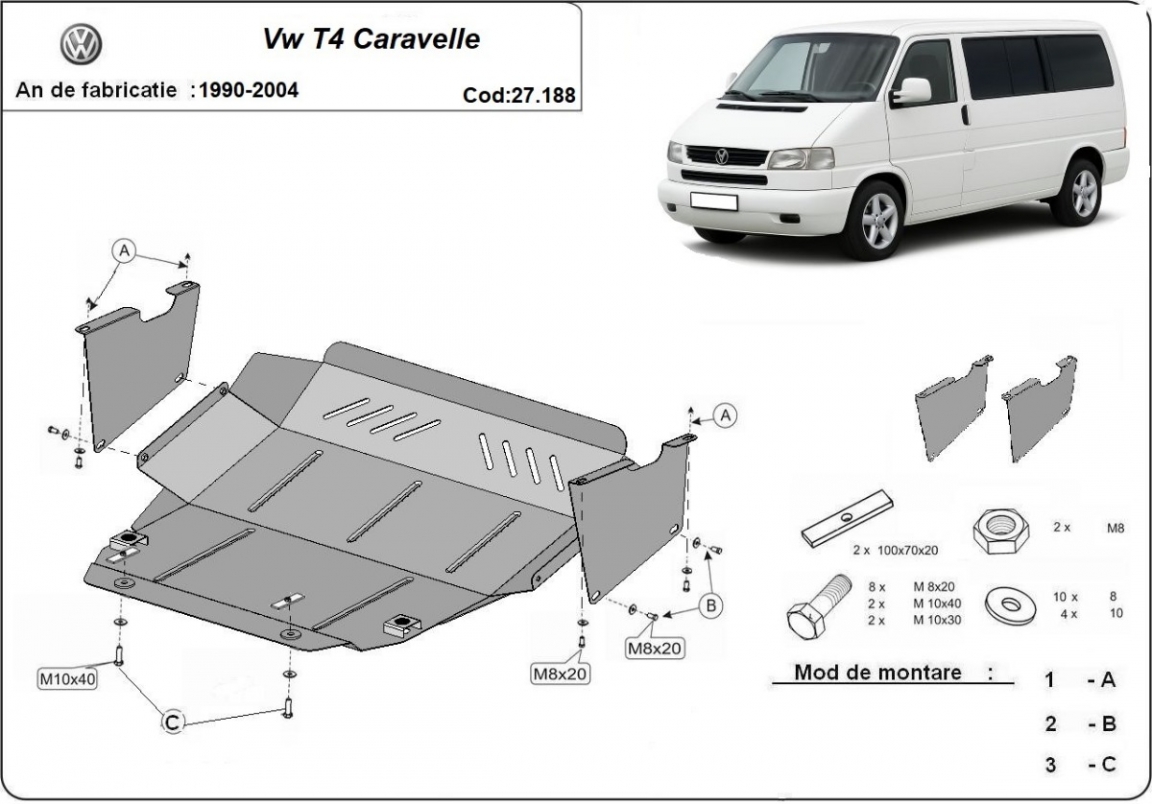 Voor de bescherming van: motor, versnellingsbak De motor beschermplaat is nieuw en past perfect bij alle versies van Transporter T4 Caravelle geproduceerd tussen 1990 en 2003. Gemaakt van 2 mm dikke Staalplaat. Schroeven, moeren, alle bevestigingsaccessoires zijn inbegrepen. Alle carterbeschermplaten zijn poedergecoat, om corrosie te vermijden. De buitenkant van de carterbeschermplaten heeft staalversterkingen, waardoor de weerstand tegen impact wordt verhoogd. |