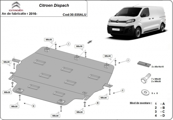 Voor de bescherming van: motor, versnellingsbak, radiator De motor beschermplaat is nieuw en past perfect bij alle versies van Citroen Dispach geproduceerd tussen 2016 en 2026. Gemaakt van 3 mm dikke Aluminiumplaat. De schilden zijn van aluminium, maar de bevestigingssteunen zijn van staal. Schroeven, moeren, alle bevestigingsaccessoires zijn inbegrepen. Alle carterbeschermplaten zijn poedergecoat, om corrosie te vermijden. De buitenkant van de carterbeschermplaten heeft staalversterkingen, waardoor de weerstand tegen impact wordt verhoogd. |