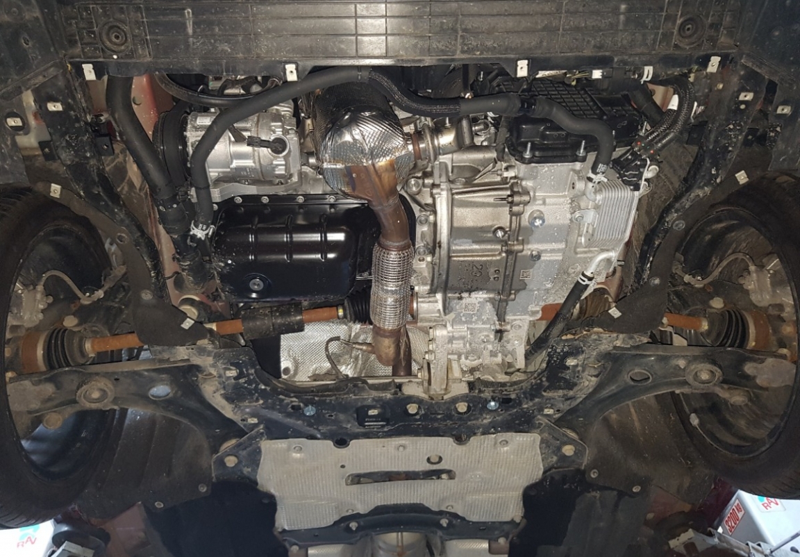 | Het monteren van de carterbeschermplaat eist geen wijzigingen aan de voertuigstructuur. |