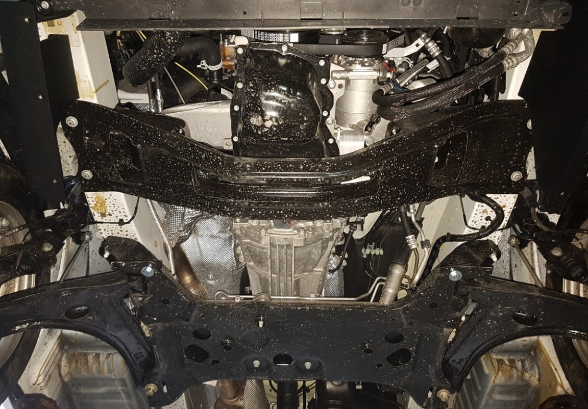 | Het monteren van de carterbeschermplaat eist geen wijzigingen aan de voertuigstructuur. |