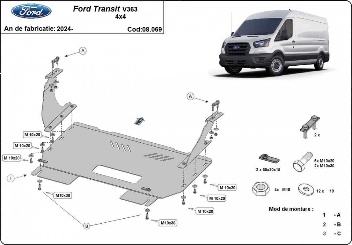 Motor en Versnellingsbak Beschermplaat voor Ford Transit V363 4x4 (2024-2026)