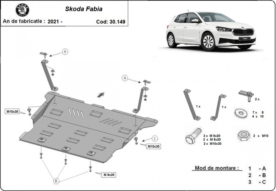 Voor de bescherming van: motor, versnellingsbak, radiator, voorbumper De motor beschermplaat is nieuw en past perfect bij alle versies van Skoda Fabia geproduceerd tussen 2021 en 2026. Gemaakt van 2 mm dikke Staalplaat. Schroeven, moeren, alle bevestigingsaccessoires zijn inbegrepen. Alle carterbeschermplaten zijn poedergecoat, om corrosie te vermijden. De buitenkant van de carterbeschermplaten heeft staalversterkingen, waardoor de weerstand tegen impact wordt verhoogd. |