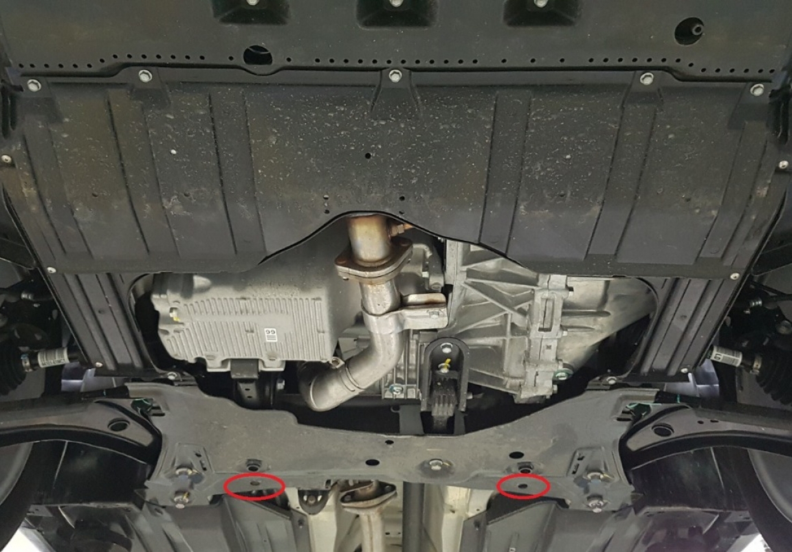 | Het monteren van de carterbeschermplaat eist geen wijzigingen aan de voertuigstructuur. |
