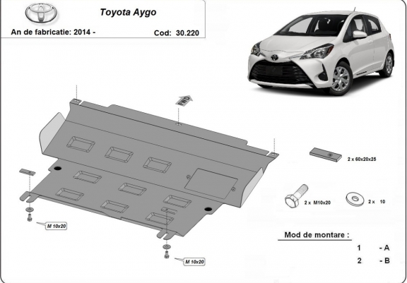 Protection sous moteur et de la boîte de vitesse Toyota Aygo AB40 2014 - 2022 Le produit n'est pas adaptable. Le mécanicien m'a fait une lettre confirmant la non adaptation. Je demande un billet de retour svp. Merci.