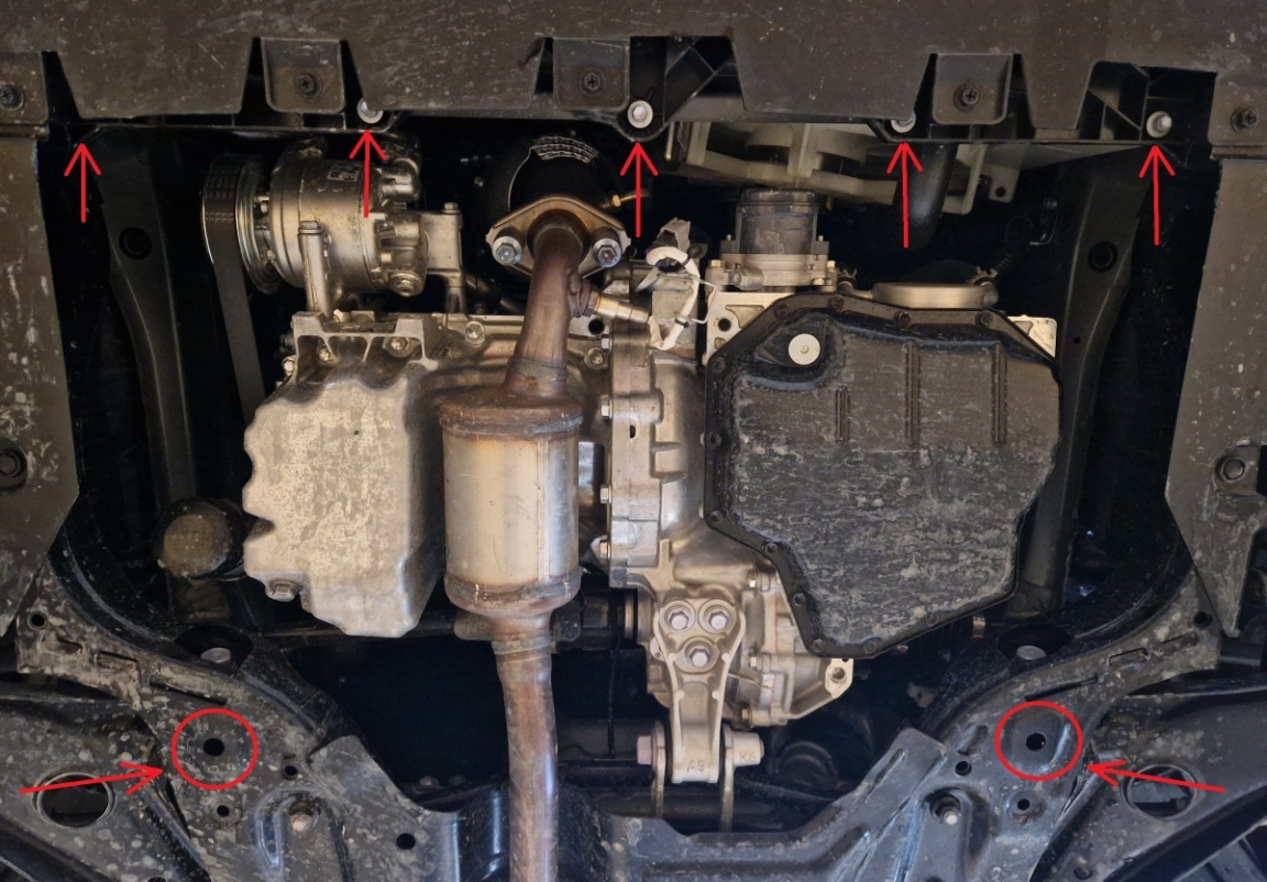 | Het monteren van de carterbeschermplaat eist geen wijzigingen aan de voertuigstructuur. |