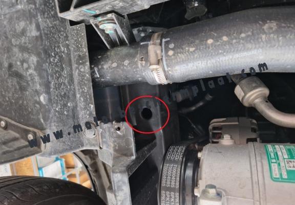 | Het monteren van de carterbeschermplaat eist geen wijzigingen aan de voertuigstructuur. |