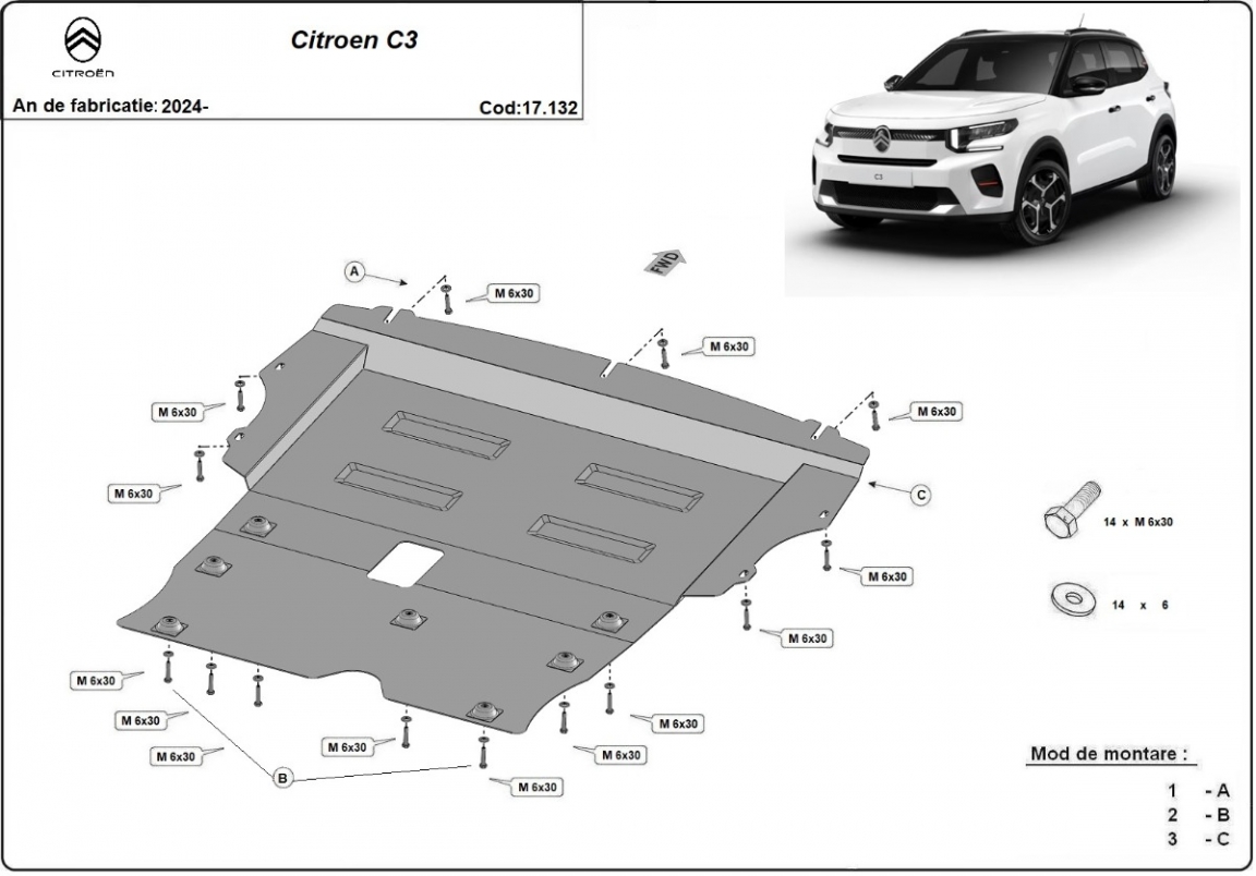 Motor en Versnellingsbak Beschermplaat voor Citroen C3 (2024-2026)