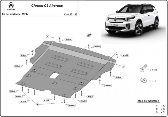 Motor en Versnellingsbak Beschermplaat voor Citroen C3 Aircross (2024-2026)