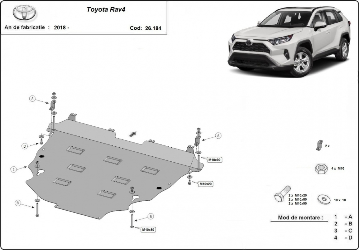 Voor de bescherming van: motor, versnellingsbak, radiator, voorbumper De motor beschermplaat is nieuw en past perfect bij alle versies van Toyota RAV4 geproduceerd tussen 2018 en 2026. Gemaakt van 4 mm dikke Aluminiumplaat. De schilden zijn van aluminium, maar de bevestigingssteunen zijn van staal. Schroeven, moeren, alle bevestigingsaccessoires zijn inbegrepen. Alle carterbeschermplaten zijn poedergecoat, om corrosie te vermijden. De buitenkant van de carterbeschermplaten heeft staalversterkingen, waardoor de weerstand tegen impact wordt verhoogd. |