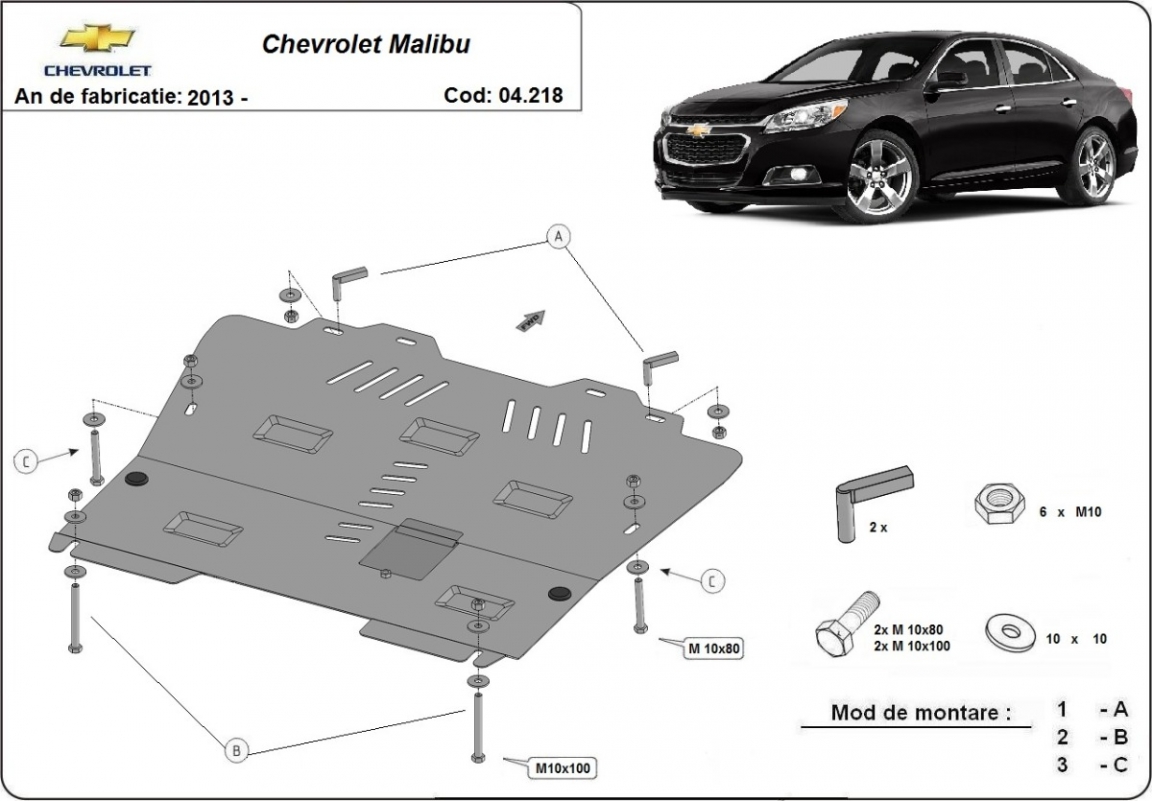 Voor de bescherming van: motor, versnellingsbak, radiator De motor beschermplaat is nieuw en past perfect bij alle versies van Chevrolet Malibu geproduceerd tussen 2013 en 2015. Het heeft een opening voor de oliecarter, dus hoeft het niet verwijderd worden bij olieverversing. Gemaakt van 2 mm dikke Staalplaat. Schroeven, moeren, alle bevestigingsaccessoires zijn inbegrepen. Alle carterbeschermplaten zijn poedergecoat, om corrosie te vermijden. De buitenkant van de carterbeschermplaten heeft staalversterkingen, waardoor de weerstand tegen impact wordt verhoogd. |