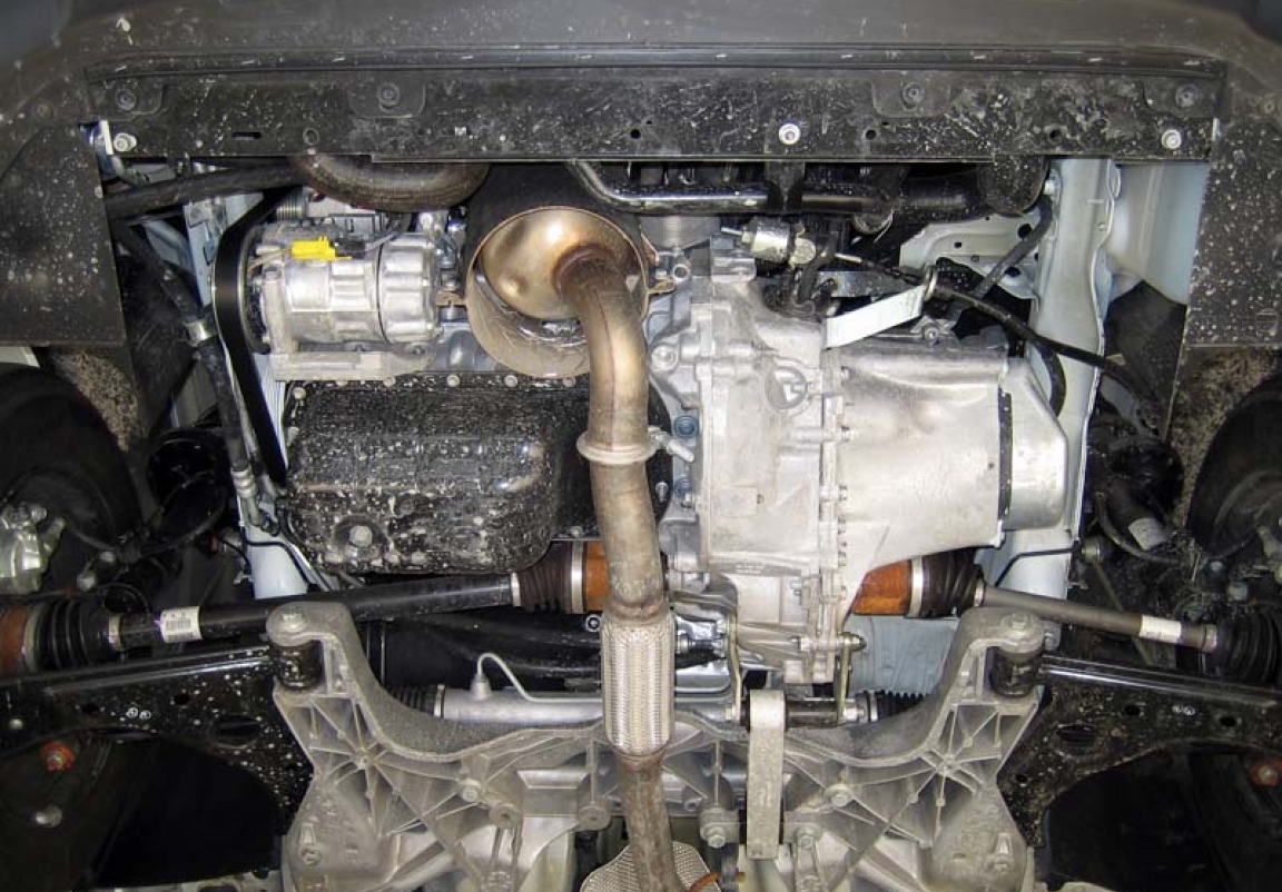 | Het monteren van de carterbeschermplaat eist geen wijzigingen aan de voertuigstructuur. |