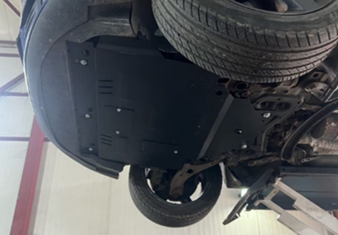 | Ieder voertuig heeft fabrieksgemaakte schroefgaten voor de carterbeschermplaat, voor een gemakkelijke montage. |