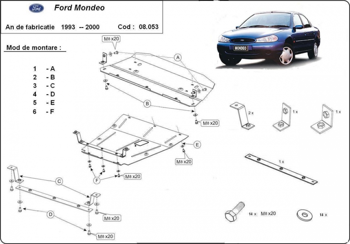 Voor de bescherming van: motor, versnellingsbak, radiator, voorbumper De motor beschermplaat is nieuw en past perfect bij de Ford Mondeo 1,2, met de volgende motor / aandrijfversies: 1.8 , 2.0 - geproduceerd tussen 1992 en 2000. Het heeft een opening voor de oliecarter, dus hoeft het niet verwijderd worden bij olieverversing. Gemaakt van 2 mm dikke Staalplaat. Schroeven, moeren, alle bevestigingsaccessoires zijn inbegrepen. Alle carterbeschermplaten zijn poedergecoat, om corrosie te vermijden. De buitenkant van de carterbeschermplaten heeft staalversterkingen, waardoor de weerstand tegen impact wordt verhoogd. |