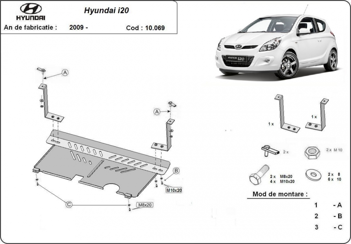 Motor, Versnellingsbak en Radiator Beschermplaat voor Hyundai i 20 (2009-2014)