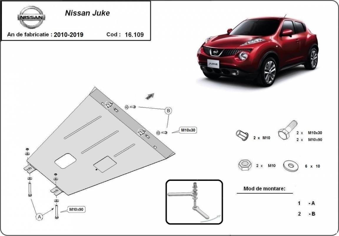 Voor de bescherming van: motor, versnellingsbak, radiator De motor beschermplaat is nieuw en past perfect bij alle versies van Nissan Juke geproduceerd tussen 2010 en 2019. Het heeft een opening voor de oliecarter, dus hoeft het niet verwijderd worden bij olieverversing. Gemaakt van 2,5 mm dikke Staalplaat. Schroeven, moeren, alle bevestigingsaccessoires zijn inbegrepen. Alle carterbeschermplaten zijn poedergecoat, om corrosie te vermijden. De buitenkant van de carterbeschermplaten heeft staalversterkingen, waardoor de weerstand tegen impact wordt verhoogd. |