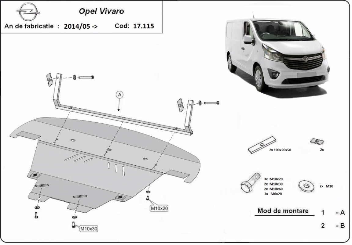 Voor de bescherming van: motor, versnellingsbak, radiator, voorbumper De motor beschermplaat is nieuw en past perfect bij alle versies van Opel Vivaro geproduceerd tussen 2014 en 2019. Gemaakt van 2 mm dikke Staalplaat. Schroeven, moeren, alle bevestigingsaccessoires zijn inbegrepen. Alle carterbeschermplaten zijn poedergecoat, om corrosie te vermijden. De buitenkant van de carterbeschermplaten heeft staalversterkingen, waardoor de weerstand tegen impact wordt verhoogd. |