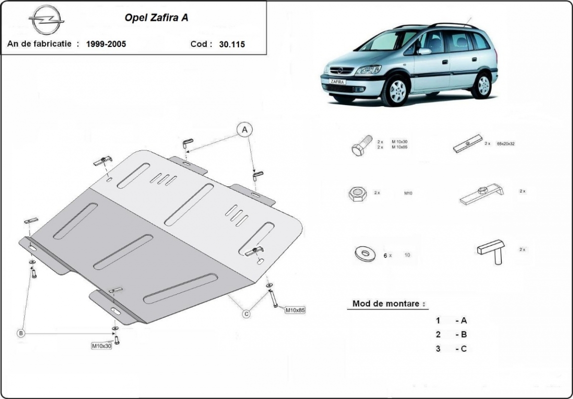 Voor de bescherming van: motor, versnellingsbak, radiator De motor beschermplaat is nieuw en past perfect bij alle versies van Opel Zafira geproduceerd tussen 1999 en 2005. Gemaakt van 2 mm dikke Staalplaat. Schroeven, moeren, alle bevestigingsaccessoires zijn inbegrepen. Alle carterbeschermplaten zijn poedergecoat, om corrosie te vermijden. De buitenkant van de carterbeschermplaten heeft staalversterkingen, waardoor de weerstand tegen impact wordt verhoogd. |