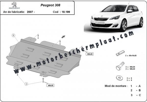 Motor, Versnellingsbak en Radiator Beschermplaat voor Peugeot 308 (2007-2017)