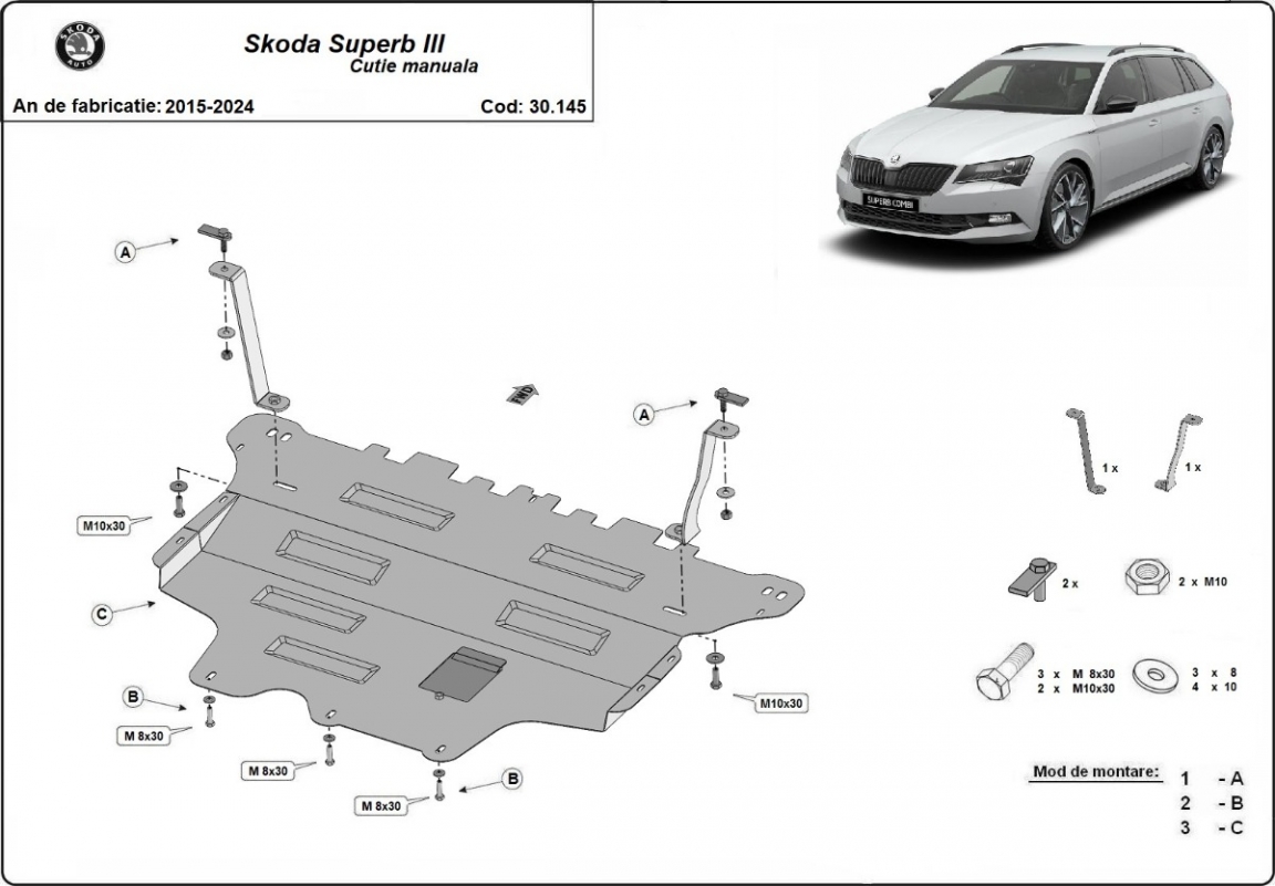 Motor, Versnellingsbak en Radiator Beschermplaat voor Skoda Superb - handmatige versnellingen (2015-2024)