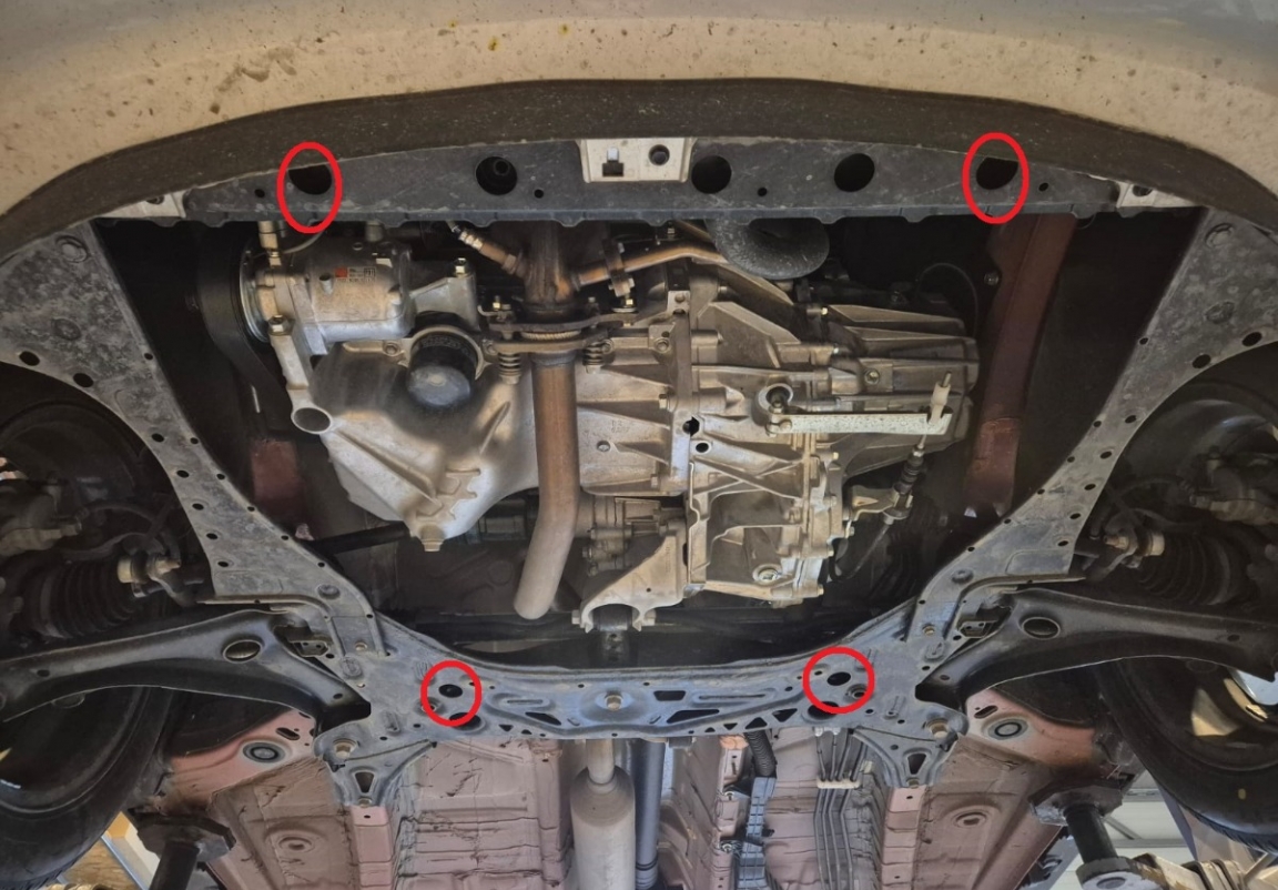 | Het monteren van de carterbeschermplaat eist geen wijzigingen aan de voertuigstructuur. |