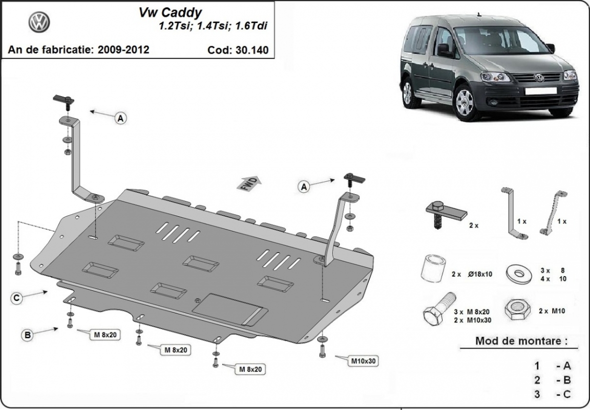 Voor de bescherming van: motor, versnellingsbak, radiator De motor beschermplaat is nieuw en past perfect bij de Volkswagen Caddy , met de volgende motor / aandrijfversies: 1.2,1.4,TSI, 1.6TDI, - geproduceerd tussen 2010 en 2012. Het heeft een opening voor de oliecarter, dus hoeft het niet verwijderd worden bij olieverversing. Gemaakt van 2 mm dikke Staalplaat. Schroeven, moeren, alle bevestigingsaccessoires zijn inbegrepen. Alle carterbeschermplaten zijn poedergecoat, om corrosie te vermijden. De buitenkant van de carterbeschermplaten heeft staalversterkingen, waardoor de weerstand tegen impact wordt verhoogd. |