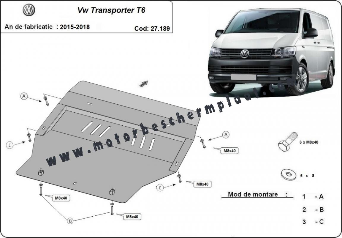 Motor, Versnellingsbak en Radiator Beschermplaat voor Volkswagen Transporter T6 (2015-2018)