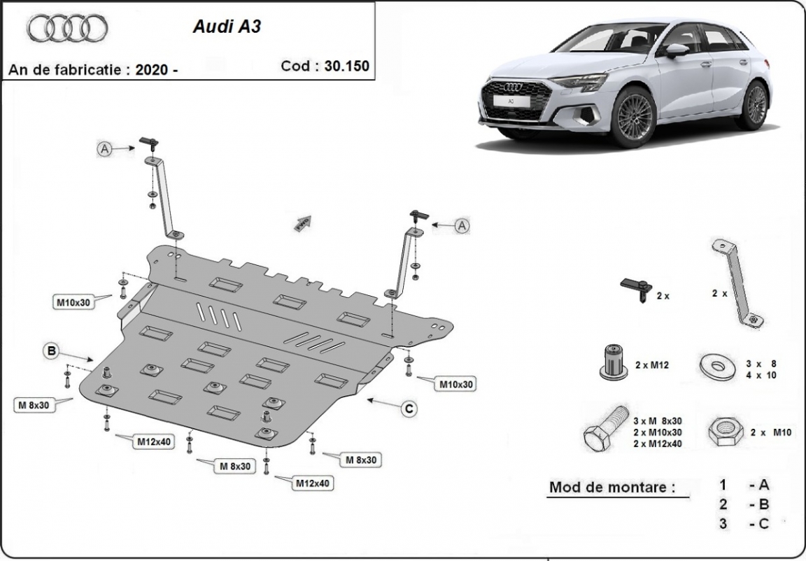 Voor de bescherming van: motor, versnellingsbak, radiator De motor beschermplaat is nieuw en past perfect bij alle versies van Audi A3 geproduceerd tussen 2020 en 2026. Gemaakt van 2 mm dikke Staalplaat. Schroeven, moeren, alle bevestigingsaccessoires zijn inbegrepen. Alle carterbeschermplaten zijn poedergecoat, om corrosie te vermijden. De buitenkant van de carterbeschermplaten heeft staalversterkingen, waardoor de weerstand tegen impact wordt verhoogd. |
