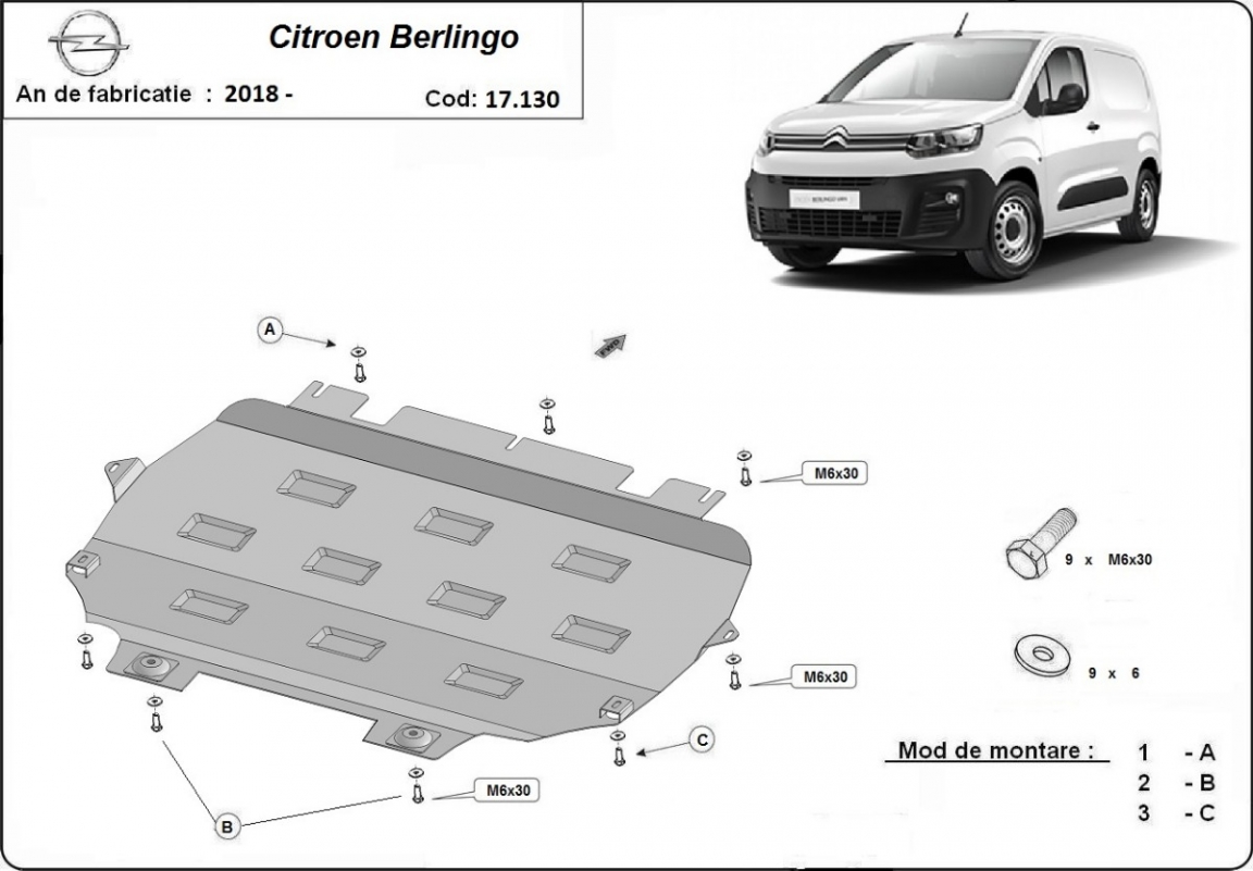 Voor de bescherming van: motor, versnellingsbak, radiator De motor beschermplaat is nieuw en past perfect bij alle versies van Citroen Berlingo geproduceerd tussen 2018 en 2026. Gemaakt van 2 mm dikke Staalplaat. Schroeven, moeren, alle bevestigingsaccessoires zijn inbegrepen. Alle carterbeschermplaten zijn poedergecoat, om corrosie te vermijden. De buitenkant van de carterbeschermplaten heeft staalversterkingen, waardoor de weerstand tegen impact wordt verhoogd. |
