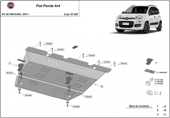 Motor, Versnellingsbak en Radiator Beschermplaat voor Fiat Panda 4x4 (2011-2026)
