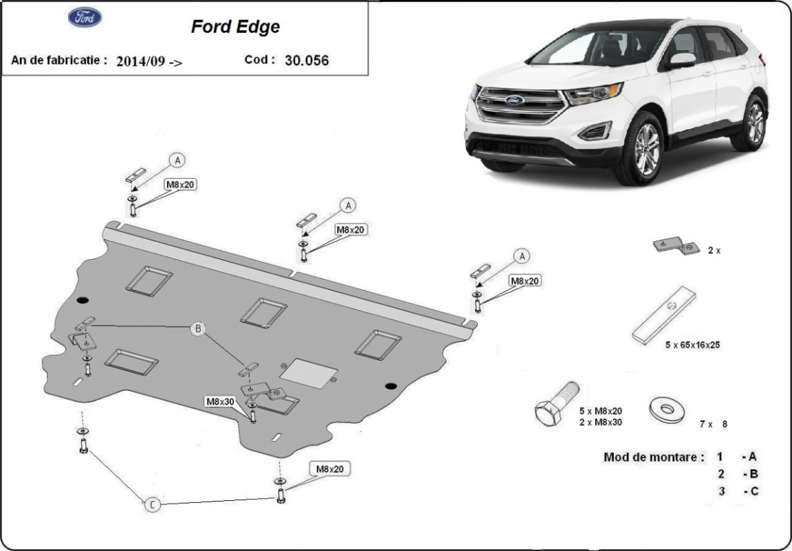 Voor de bescherming van: motor, versnellingsbak, radiator De motor beschermplaat is nieuw en past perfect bij alle versies van Ford Edge geproduceerd tussen 2014 en 2021. Gemaakt van 2 mm dikke Staalplaat. Schroeven, moeren, alle bevestigingsaccessoires zijn inbegrepen. Alle carterbeschermplaten zijn poedergecoat, om corrosie te vermijden. De buitenkant van de carterbeschermplaten heeft staalversterkingen, waardoor de weerstand tegen impact wordt verhoogd. |