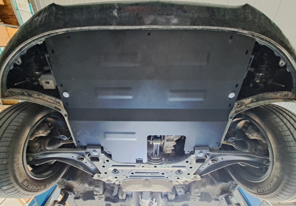 | Het monteren van de carterbeschermplaat eist geen wijzigingen aan de voertuigstructuur. |