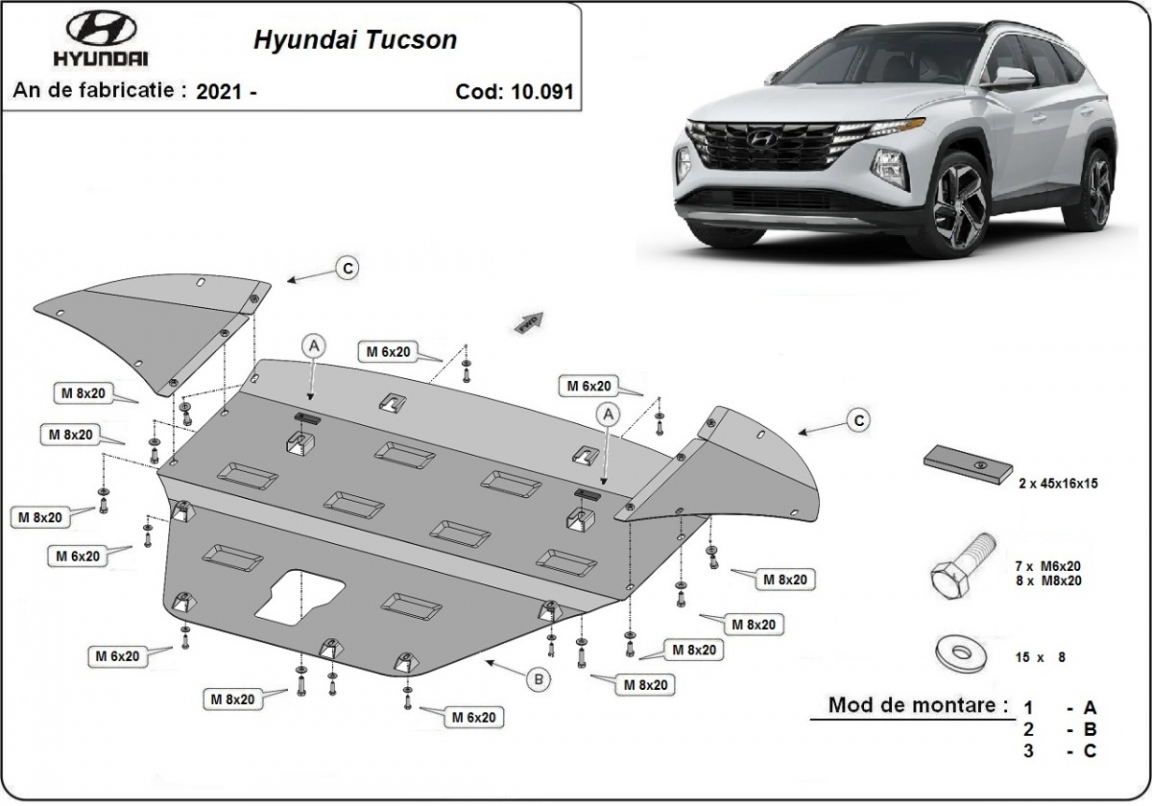 Voor de bescherming van: motor, versnellingsbak, radiator, voorbumper De motor beschermplaat is nieuw en past perfect bij alle versies van Hyundai Tucson geproduceerd tussen 2021 en 2026. Gemaakt van 2 mm dikke Staalplaat. Schroeven, moeren, alle bevestigingsaccessoires zijn inbegrepen. Alle carterbeschermplaten zijn poedergecoat, om corrosie te vermijden. De buitenkant van de carterbeschermplaten heeft staalversterkingen, waardoor de weerstand tegen impact wordt verhoogd. |