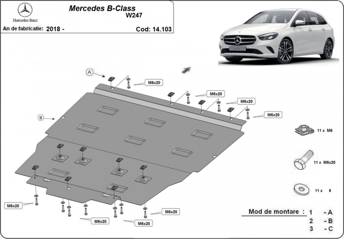 Voor de bescherming van: motor, versnellingsbak, radiator De motor beschermplaat is nieuw en past perfect bij alle versies van Mercedes B-Class W247 geproduceerd tussen 2019 en 2026. Gemaakt van 2 mm dikke Staalplaat. Schroeven, moeren, alle bevestigingsaccessoires zijn inbegrepen. Alle carterbeschermplaten zijn poedergecoat, om corrosie te vermijden. De buitenkant van de carterbeschermplaten heeft staalversterkingen, waardoor de weerstand tegen impact wordt verhoogd. |