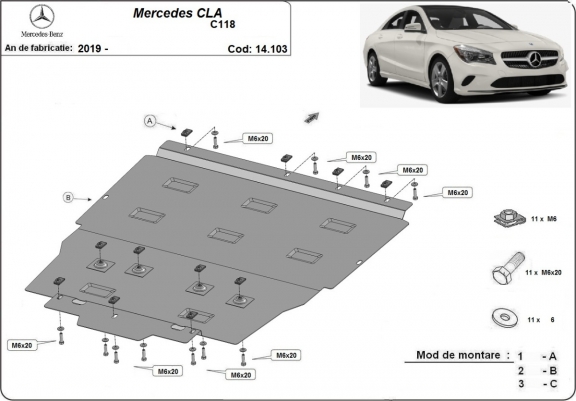 Motor, Versnellingsbak en Radiator Beschermplaat voor Mercedes CLA C118 (2019-2026)