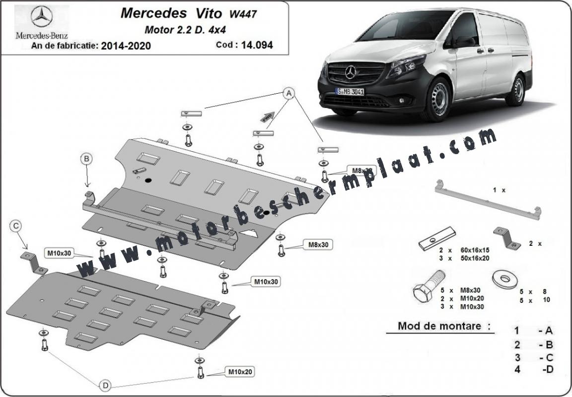 Motor, Versnellingsbak en Radiator Beschermplaat voor Mercedes Vito W447, 2.2 D, 4x4