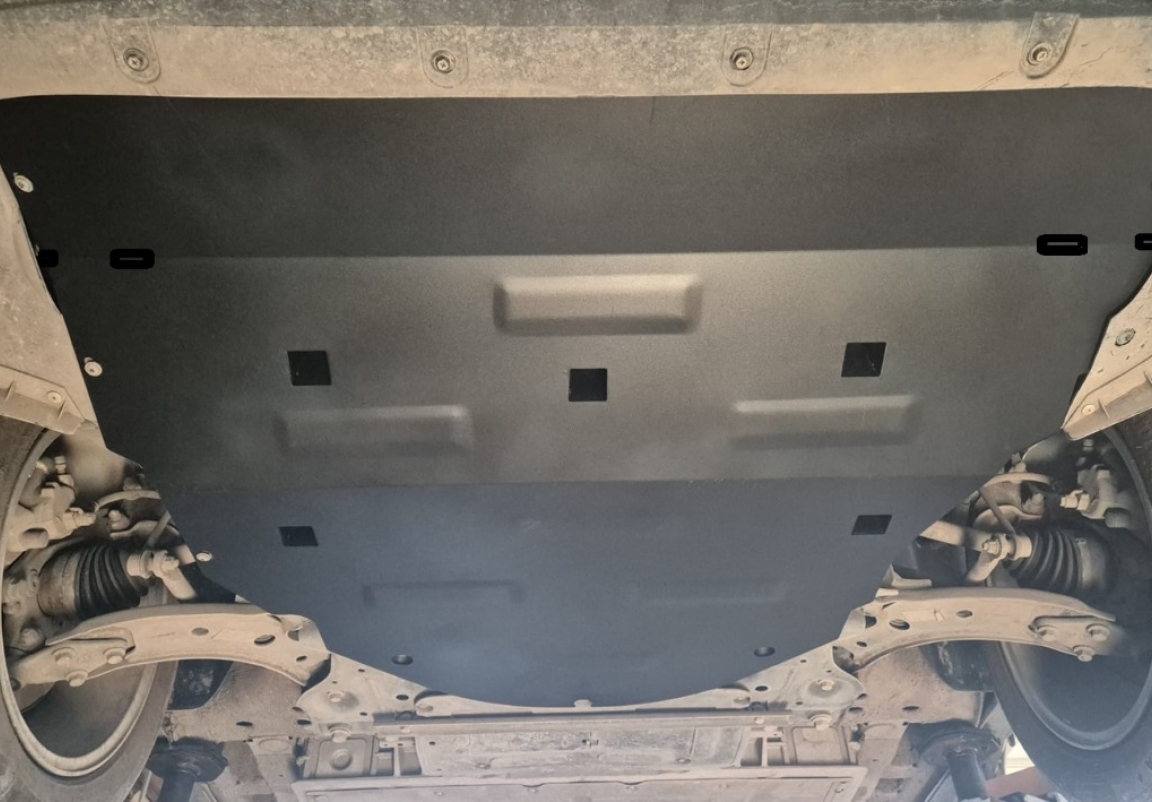 | Ieder voertuig heeft fabrieksgemaakte schroefgaten voor de carterbeschermplaat, voor een gemakkelijke montage. |