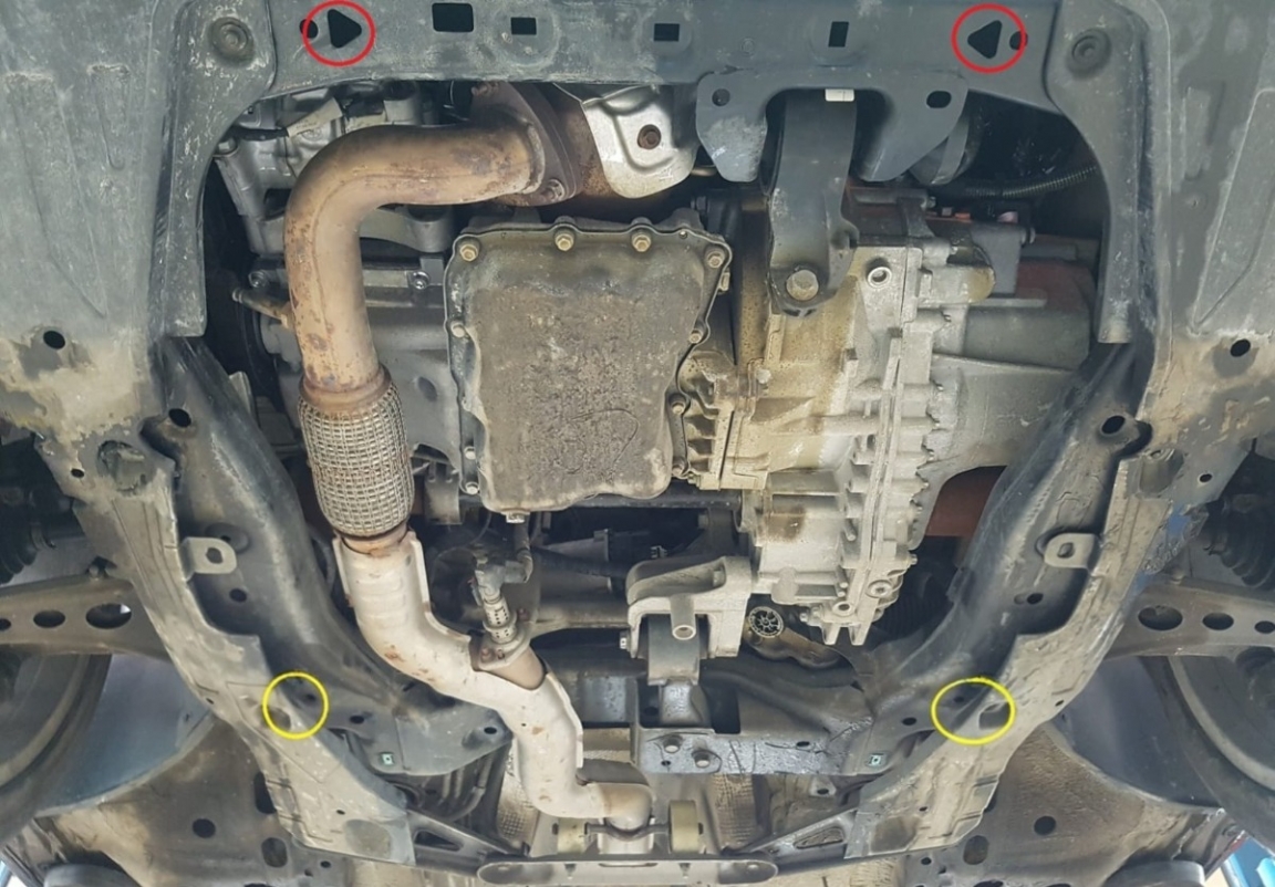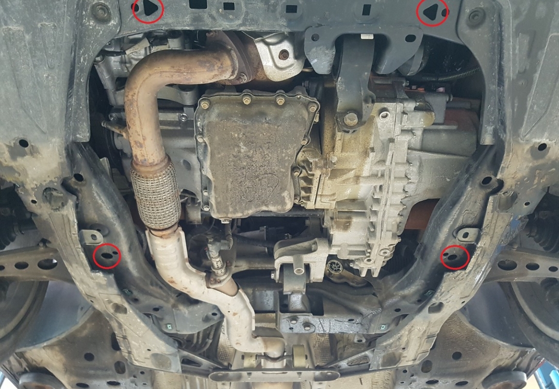 | Het monteren van de carterbeschermplaat eist geen wijzigingen aan de voertuigstructuur. |