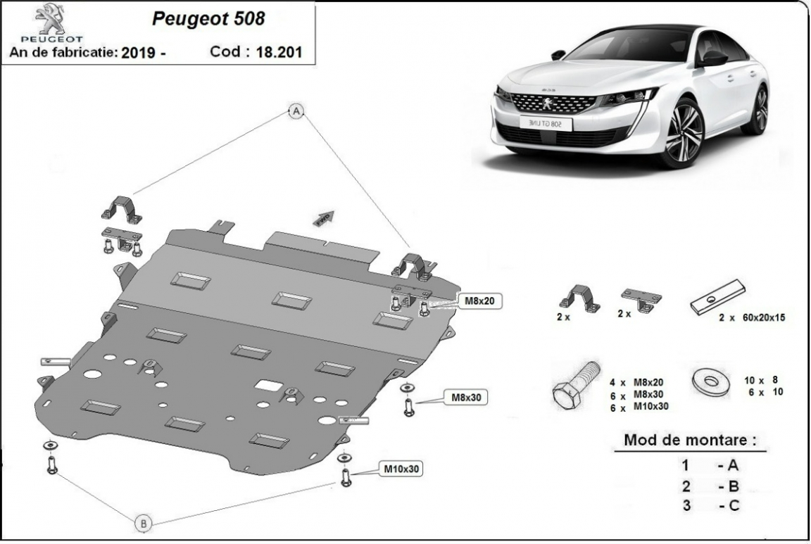 Voor de bescherming van: motor, versnellingsbak, radiator, voorbumper De motor beschermplaat is nieuw en past perfect bij alle versies van Peugeot 508 geproduceerd tussen 2019 en 2026. Gemaakt van 2 mm dikke Staalplaat. Schroeven, moeren, alle bevestigingsaccessoires zijn inbegrepen. Alle carterbeschermplaten zijn poedergecoat, om corrosie te vermijden. De buitenkant van de carterbeschermplaten heeft staalversterkingen, waardoor de weerstand tegen impact wordt verhoogd. |