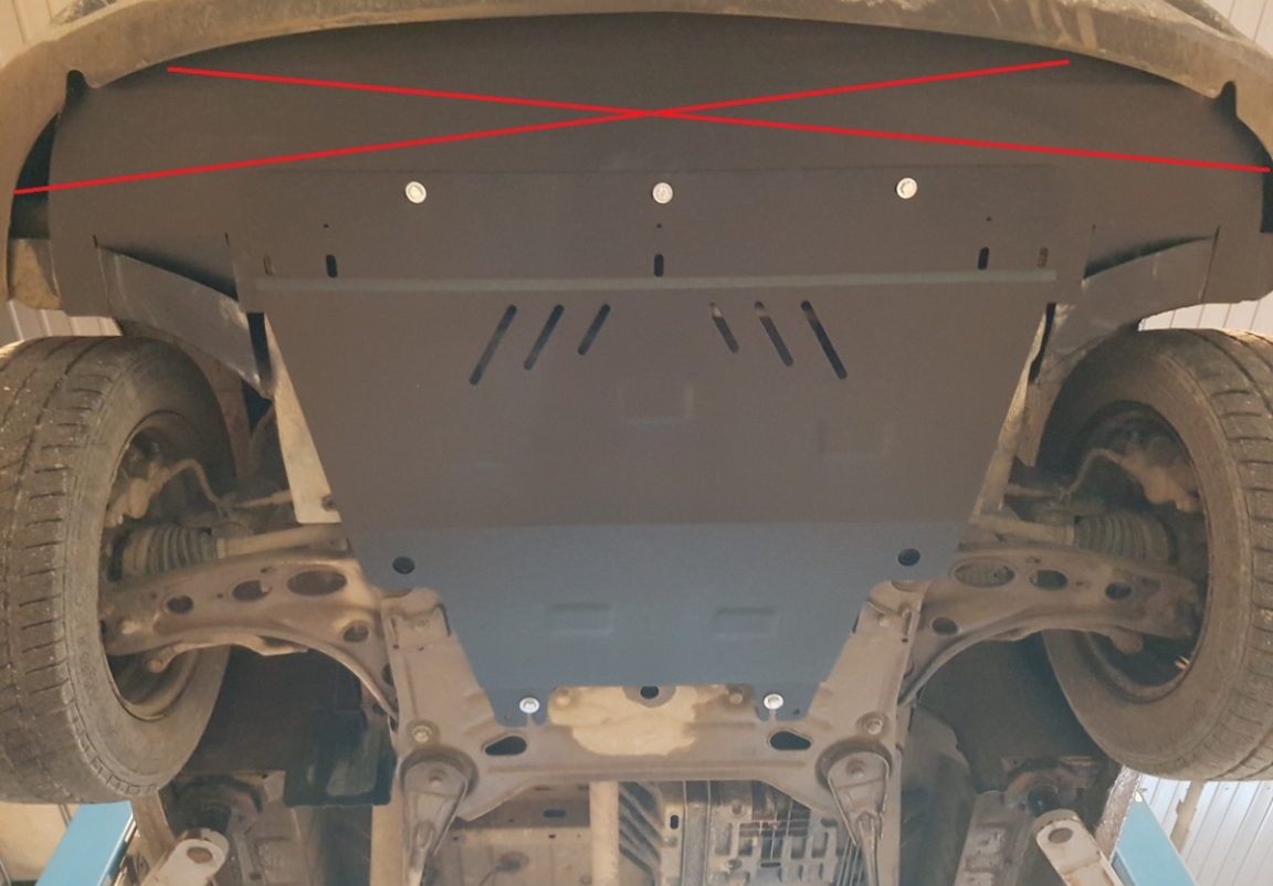 | Het monteren van de carterbeschermplaat eist geen wijzigingen aan de voertuigstructuur. |