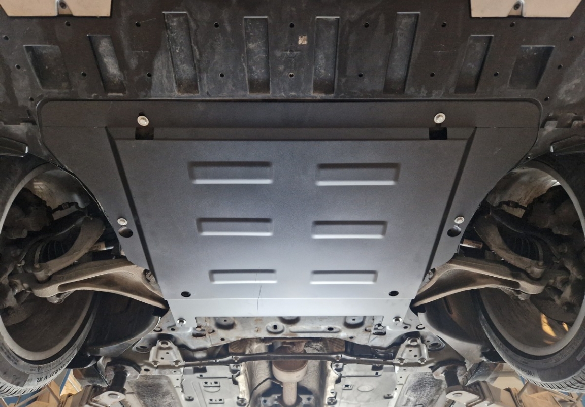 | Ieder voertuig heeft fabrieksgemaakte schroefgaten voor de carterbeschermplaat, voor een gemakkelijke montage. |