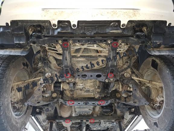 | Het monteren van de carterbeschermplaat eist geen wijzigingen aan de voertuigstructuur. |
