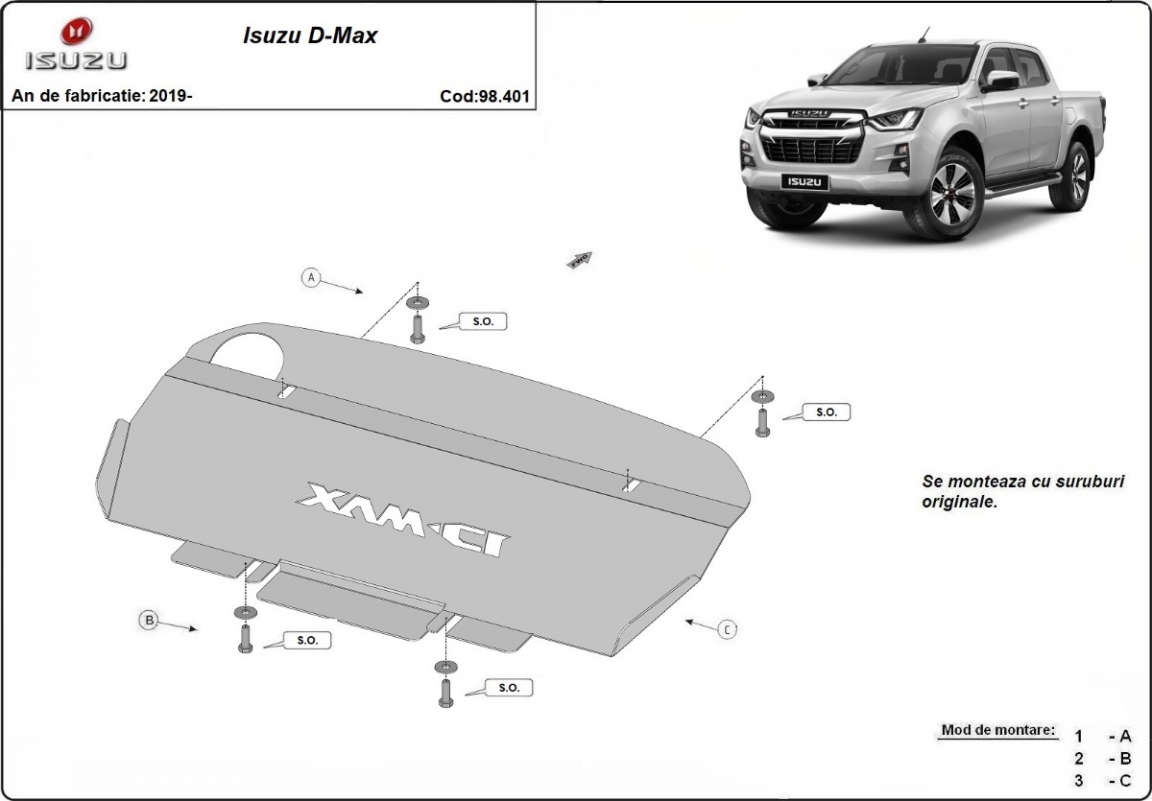 Voor de bescherming van: radiator De motor beschermplaat is nieuw en past perfect bij alle versies van Isuzu D-Max geproduceerd tussen 2019 en 2026. Gemaakt van 3 mm dikke Staalplaat. Schroeven, moeren, alle bevestigingsaccessoires zijn inbegrepen. Alle carterbeschermplaten zijn poedergecoat, om corrosie te vermijden. De buitenkant van de carterbeschermplaten heeft staalversterkingen, waardoor de weerstand tegen impact wordt verhoogd. |
