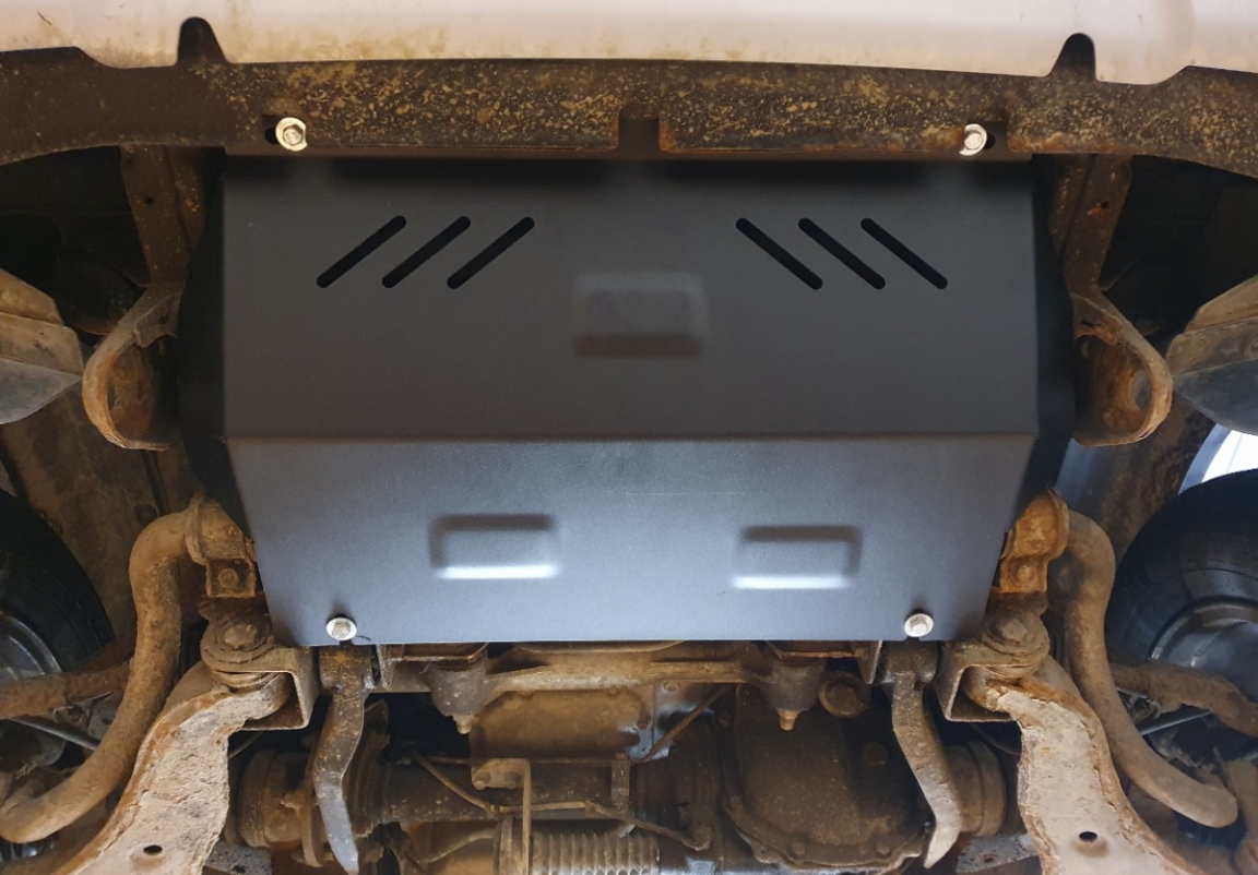 | Ieder voertuig heeft fabrieksgemaakte schroefgaten voor de carterbeschermplaat, voor een gemakkelijke montage. |