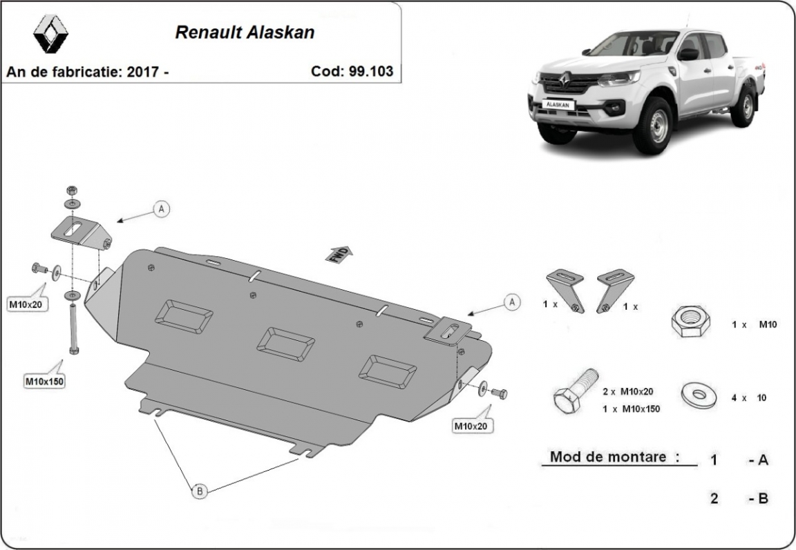 Voor de bescherming van: radiator De motor beschermplaat is nieuw en past perfect bij alle versies van Renault Alaskan geproduceerd tussen 2017 en 2026. Gemaakt van 2 mm dikke Staalplaat. Schroeven, moeren, alle bevestigingsaccessoires zijn inbegrepen. Alle carterbeschermplaten zijn poedergecoat, om corrosie te vermijden. De buitenkant van de carterbeschermplaten heeft staalversterkingen, waardoor de weerstand tegen impact wordt verhoogd. |