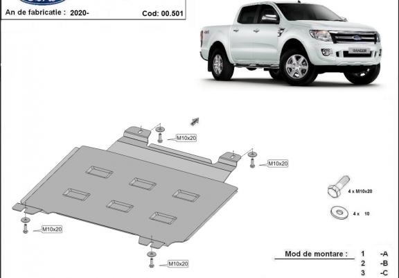 Versnellingsbak Beschermplaat voor Ford Ranger (2020-2023)