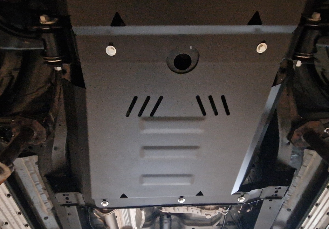 | Ieder voertuig heeft fabrieksgemaakte schroefgaten voor de carterbeschermplaat, voor een gemakkelijke montage. |