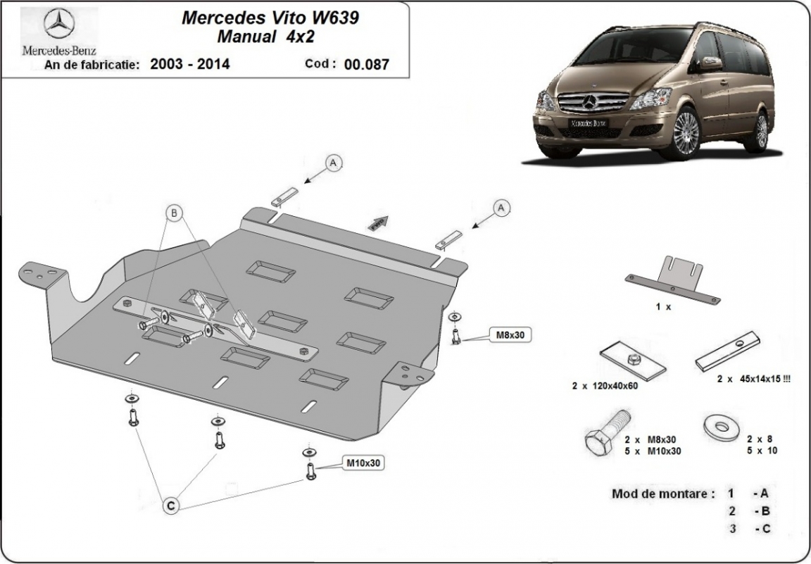 Versnellingsbak Beschermplaat voor Mercedes Viano W639 - 2.2 D 4x2 (2003-2014)